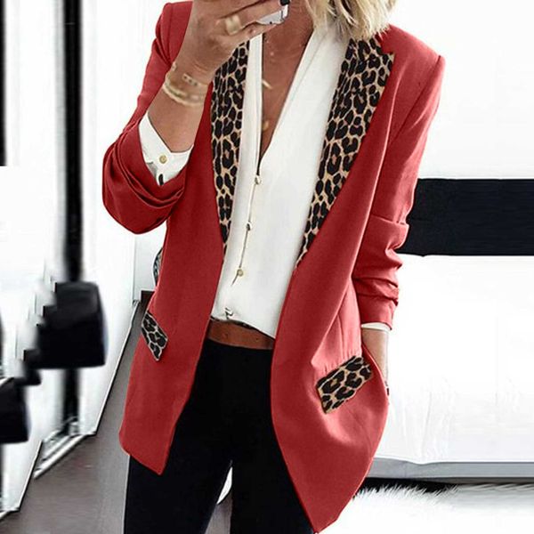 spring autumn fashion coat office suit women's leopard print jacket casual lapel cape womelazers jackets workwear#111, Black;brown