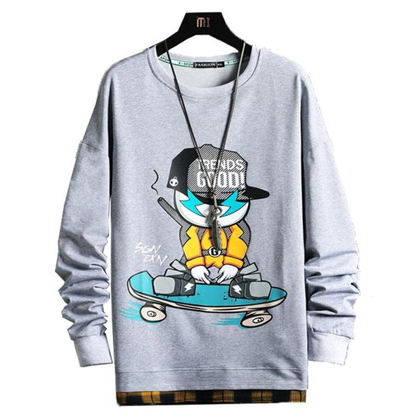 spring and autumn men's long sleeve hoodie youth wide version personality cartoon printing shirt round collar no hat hoodies & sweatshi, Black