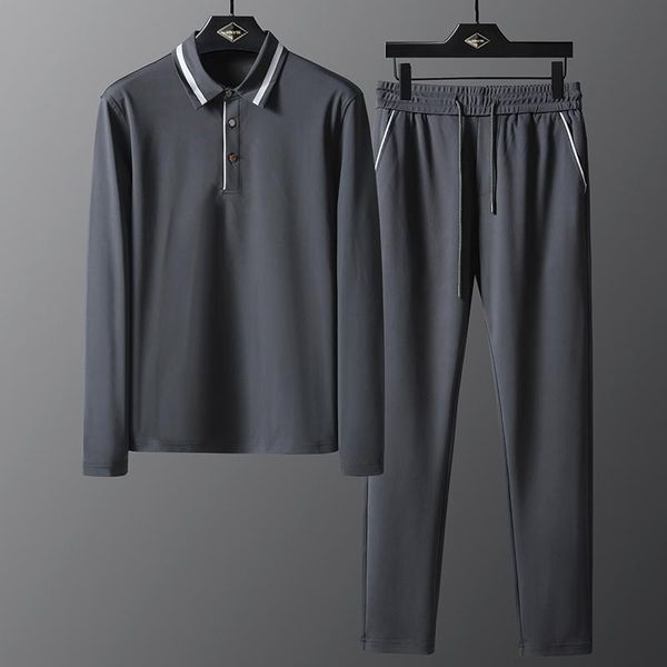 spring and autumn mens sets (t-shirts+pants) luxury long sleeve sport male sets plus size 5xl casual slim fit man suits, Gray