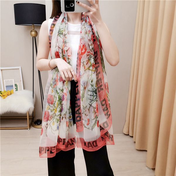 spring and autumn scarf female flowers letters long section of korean shawl scarves sunscreen excellent soft sophie resort beach towe 45, Blue;gray