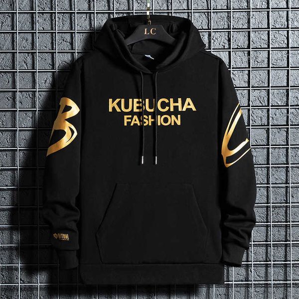 spring and autumn style large hooded long sleeved sweater men's fat oversized loose youth trend men, Black