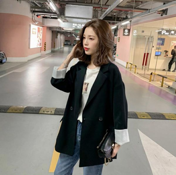 spring autumn style retro korean loose casual british small suit female black jacket coats women clothing women's jackets, Black;brown