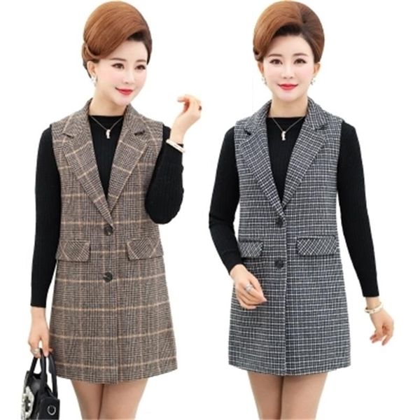 spring&autumn women's checkered ladies office lady long section clothing sleeveless vest coat casual jacket size 201102, Black;white