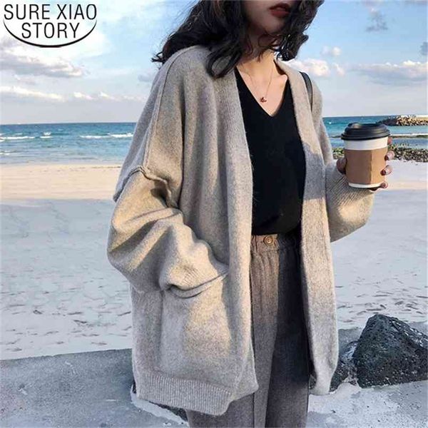 spring cardigan women coat autumn winter korean cashmere knit sweater oversized lady fashion clothes female 210421, White;black