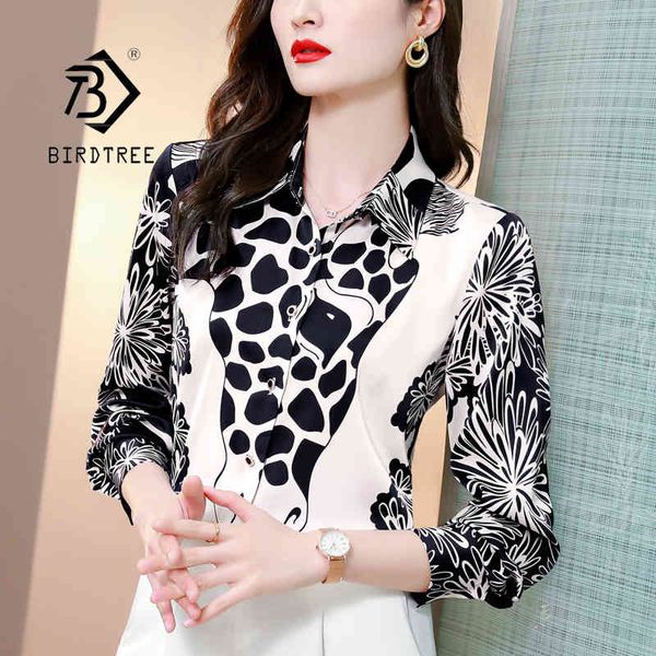 spring fashion mulberry silk shirt women printing satin blouse lady button up long sleeves female loose shirts t11001x 210419, White