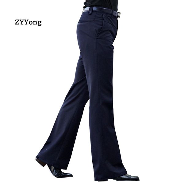 spring new flared boot cut trousers men's business casual slim black suit pants large size 37, White;black