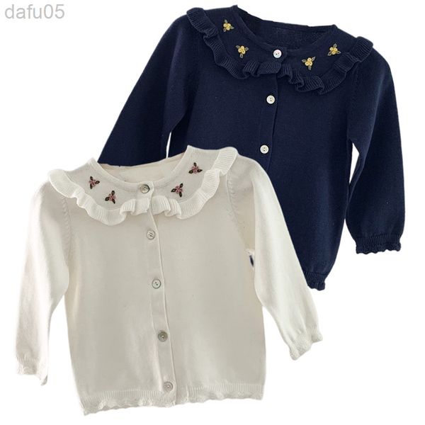 spring new korean style baby girls embroidery flowers knitted sweaters 1-7yrs children clothes toddlers kids vest jackets l220803, Blue