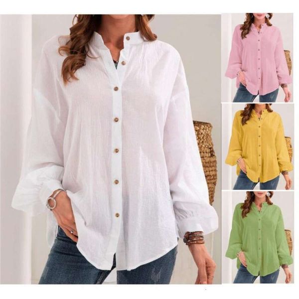 spring style pure color long sleeved shirt cotton linen cardigan womens clothing, White