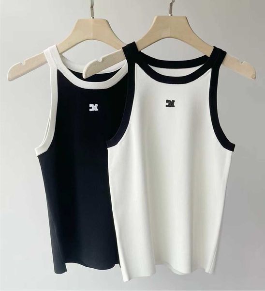 spring/summer new women's clothing mc letter embroidery contrast color edge shoulder cutting slim knitted tank strap, White