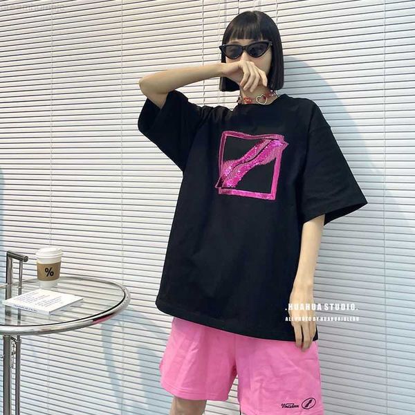 spring and summer we11done korean fashion brand beaded embroidered short-sleeved t-shirt with men and women's loose lovers 0312, White;black