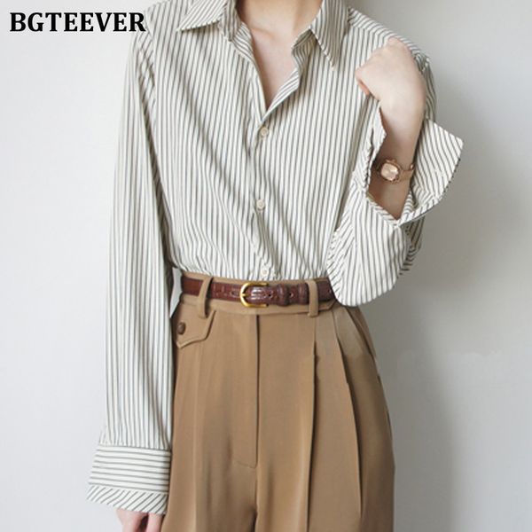 spring turn-down collar ladies striped shirts blouses long sleeve single-breasted loose casual female 2022, White