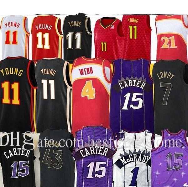 spud 4 webb vince 15 carter retro tracy 1 mcgrady basketball jersey men trae 11 young jerseys new basketball jerseys size s-2xl 43hz#, Black;red