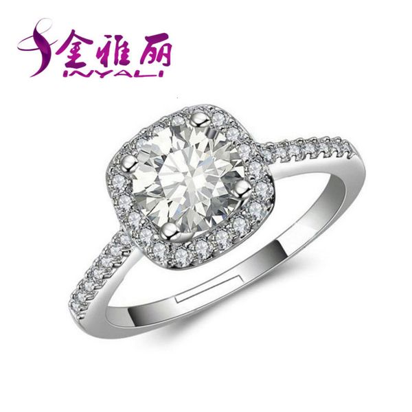 square jinyali women's full diamond ring with micro set zircon simple open, Silver