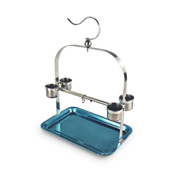 stainless steel parrot toys stand activity center tray cup perch bird play rack feeder portable cages