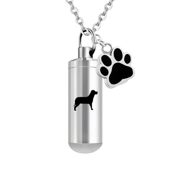 stainless steel pet paws cylinder cremation urn pendant for memorial dog jewelry keepsake pendant funeral necklace, Silver