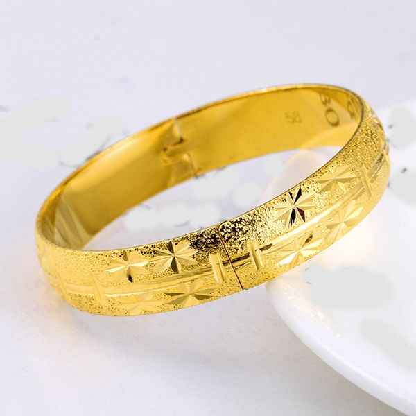 star carved womens bangle dubai classic 18k yellow gold filled solid fashion womens bracelet gift wedding party dress, Black