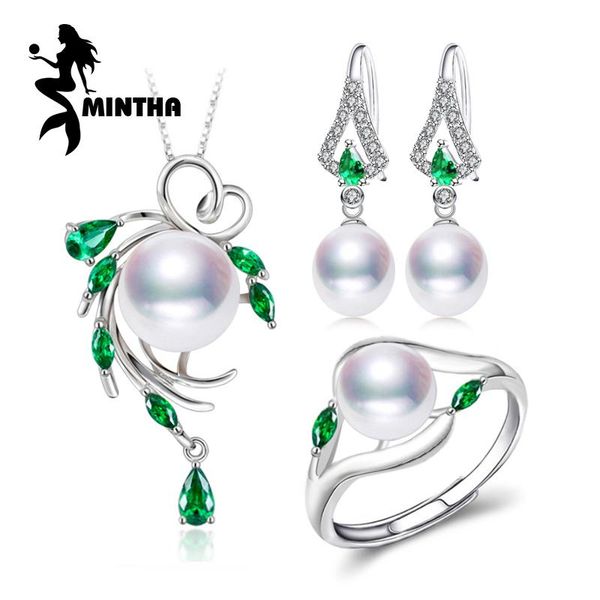 sterling silver jewelry sets for women natural pearl pendants&necklaces engagement ring set emerald drop earrings bracelet, & necklace, Black