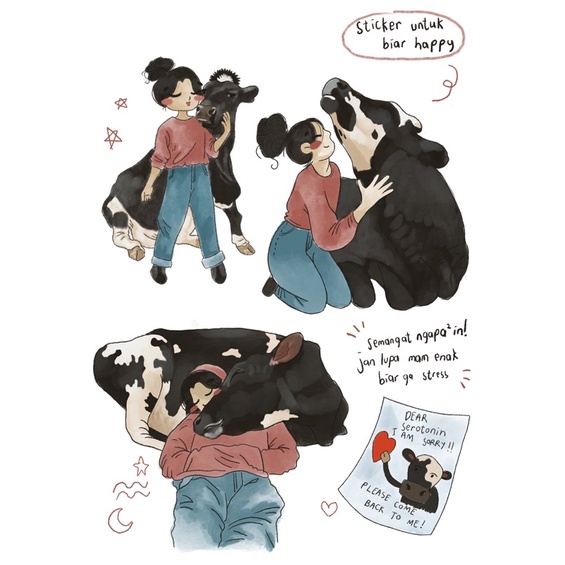tidak hanya di kertas, sticker ini bisa kamu tempelkan di atas plastik, kaca, dan permukaan lain yg kira-kira membutuhkan kelucuan sapi sapi.