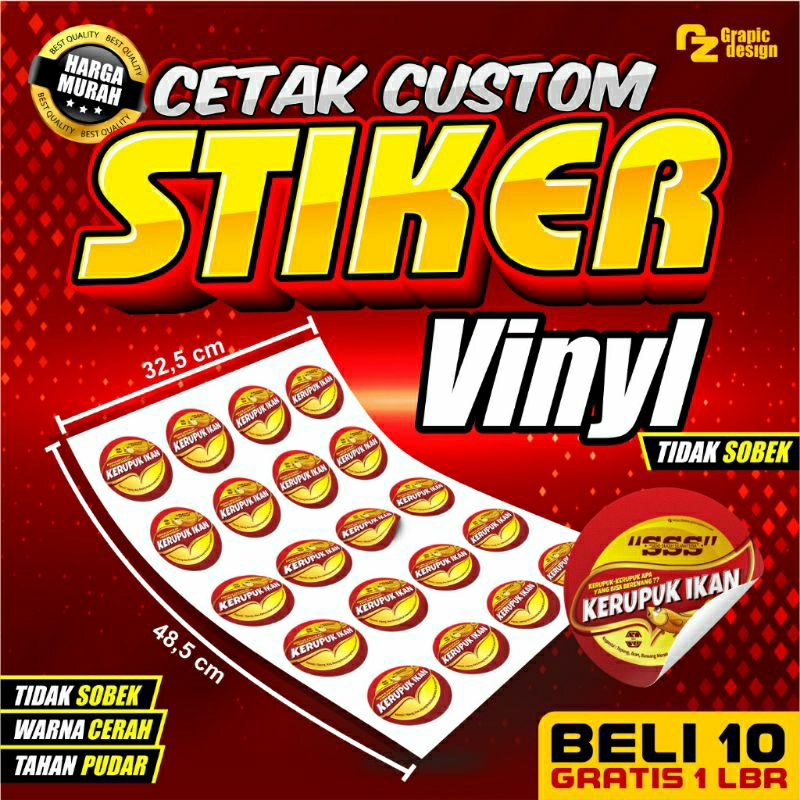 stiker vinil untuk umkm dengan berbagai desaint , anti luntur, anti sobek,anti air.
