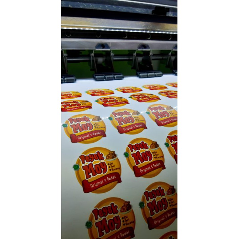 stiker label diatas menggunakan bahan ritrama (meteran)