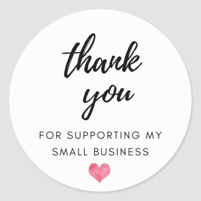 stiker terima kasih ini memakai kertas yang mengkilap dan juga tidak mudah terkelupas tekena air. kuat merekat pada produk