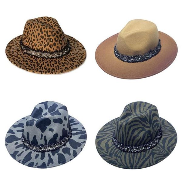 stingy brim hats men's women's hat fedoras bulk felt fedora for women men leopard zebra cow woman cap female male caps 2021 wholes, Blue;gray