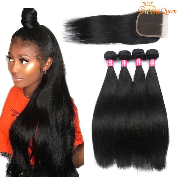 straight hair bundles with 4x4 closure brazilian human hair with lace closure unprocessed brazilian virgin hair straight closure, Black;brown