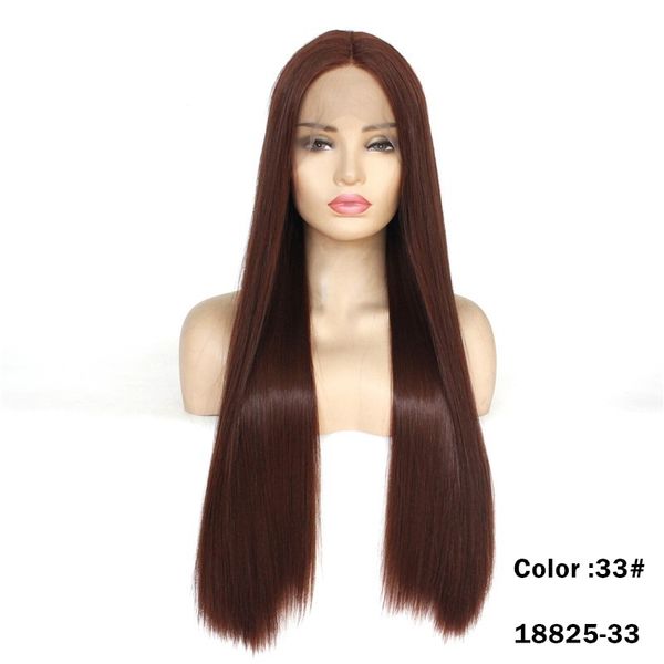 straight synthetic lacefrontal wig simulation human hair lace front wigs 12~26 inches color 33# long perruques 18825-33, Black;brown