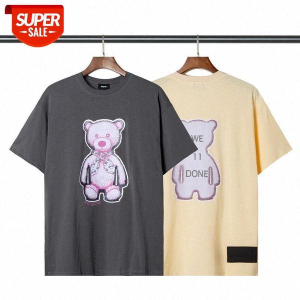 streetwear men spring and summer reflective tie bear print loose short sleeve men's women's t-shirt #qe3f, White;black