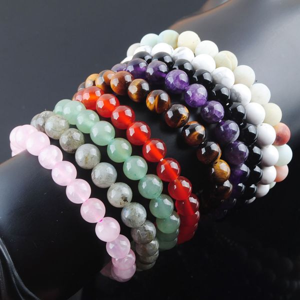 stretch beaded strand bracelet healing reiki natural gemstone 8mm beads amethyst agate tree of life charm meditation bangles jewelry 7 inche, Black