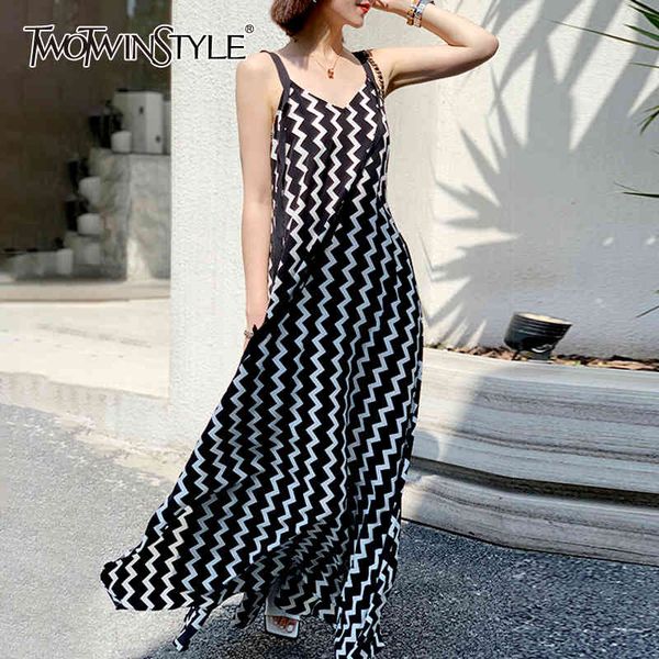 striped patchwork sling dress for women square collar sleeveless high waist maxi dresses female fashion new clothes 210428, Black;gray