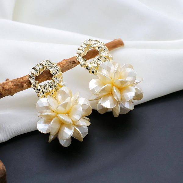 stud aensoa japan korea exaggerated flowers design acrylic big flower ball earrings for women elegant resin hanging, Golden;silver