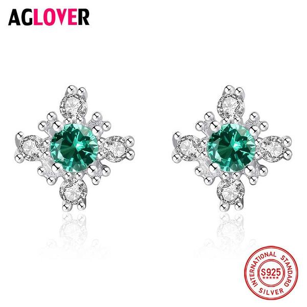 stud aglover 925 sterling silver earrings flowers green purple crystal zircon women luxury wedding jewelry gifts, Golden;silver