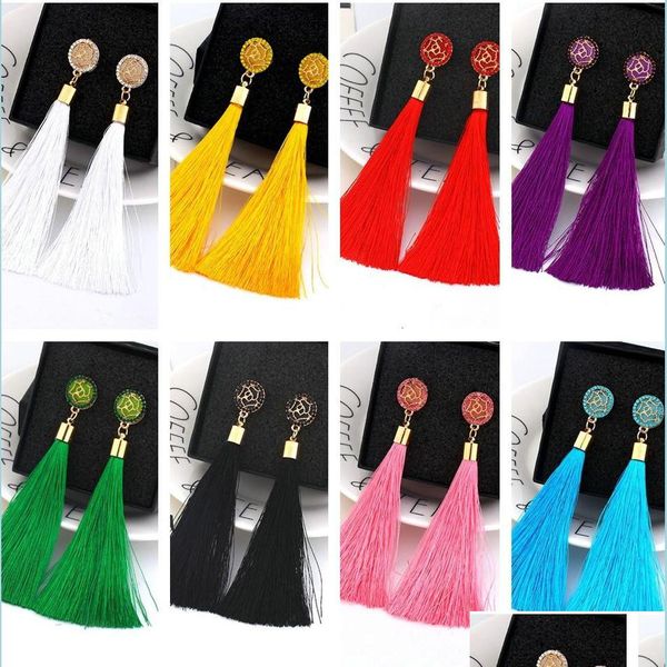 stud boho crystal long tassel drop earrings studs for women girls ethnic geometric dangle statement earring fashion jewelry christmas dhc7k, Golden;silver