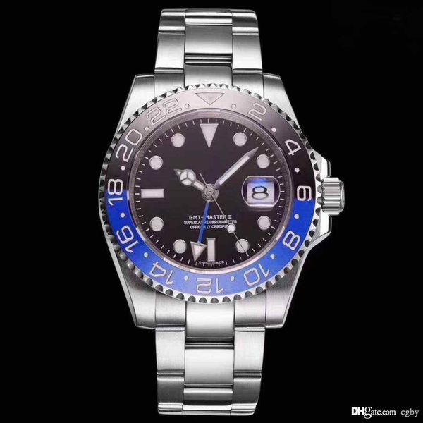 2018 gmt most popular christmas gift, luxury 3a automatic gmt luxury watch stainless steel black dial men's mechanical watch, Slivery;brown