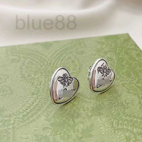 stud designer 925 sterling silver carved letter butterfly heart earrings simple men's and women's v0he, Golden;silver