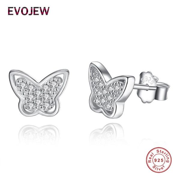 stud evojew real 925 sterling silver crystal butterfly earrings for women wedding engagement fine jewelry christmas bijoux, Golden;silver