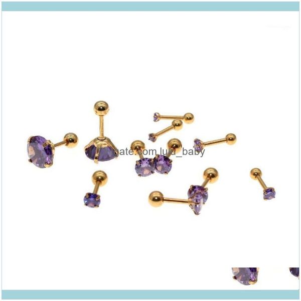 stud jewelrystud needle 1.2x6mm stainless steel screwback purple zircon earrings golden ip plating no easy fade allergy 1 drop delivery 202, Golden;silver