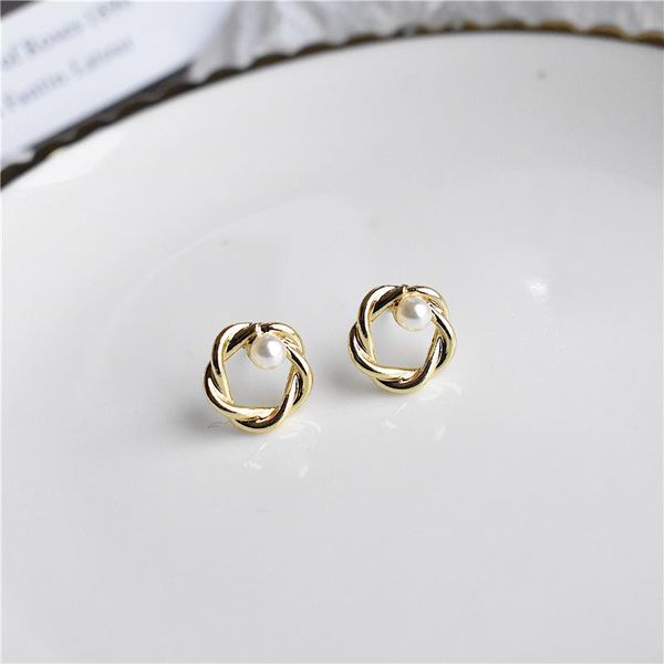 stud minimalism mini cute earrings geometric round winding metal earring with pearl for women girl jewelry party favor, Golden;silver
