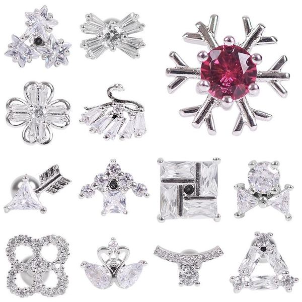 stud pinksee 1 pc men women 13 styles crystal silver color ear piercing stainless steel body puncture jewelry, Golden;silver