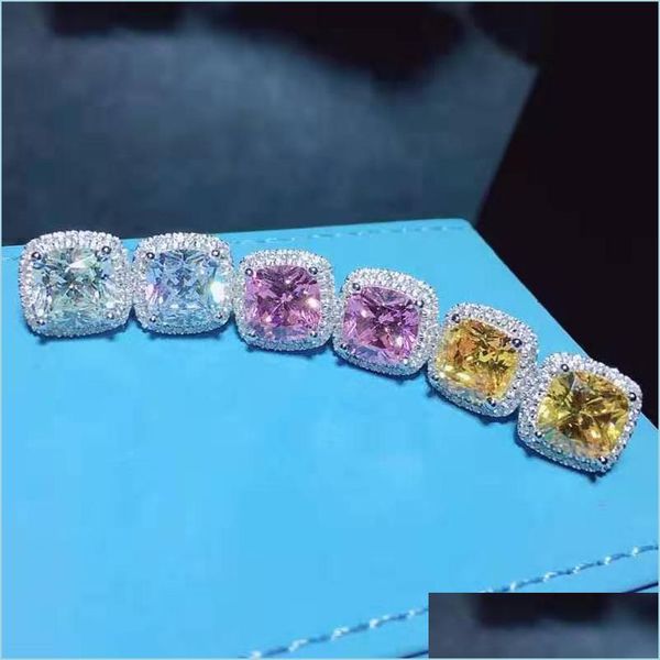 stud trendy 2ct lab pink diamond stud earring real 925 sterling sier jewelry engagement wedding earrings for women men party gift 227 dhcwz, Golden;silver