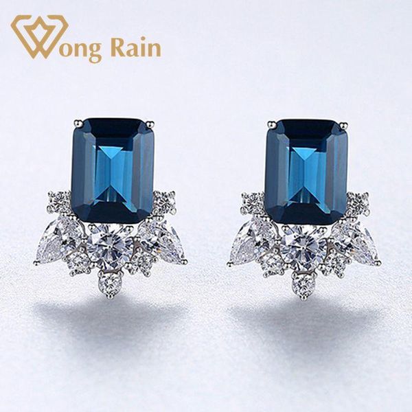 stud wong rain 925 sterling silver created moissanite sapphire gemstone birthstone earrings ear studs wedding fine jewelry wholesale, Golden;silver