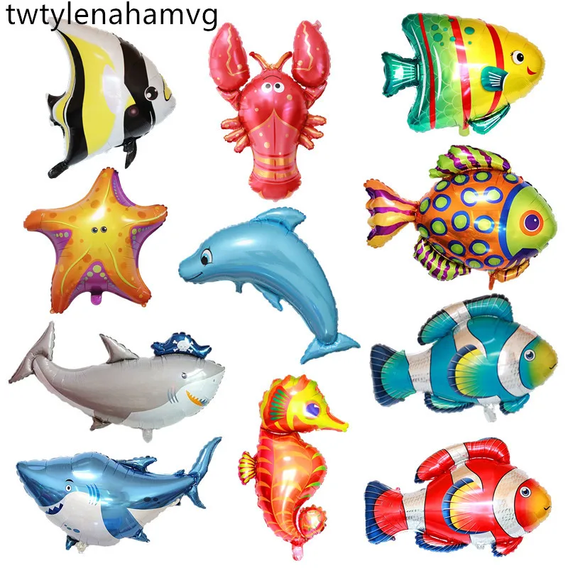 Большой мультяшный воздушный шар из алюминиевой пленки с морскими животными, летняя плявечерние НКА, детское Рождественское украшение, подвеска для детской ванны