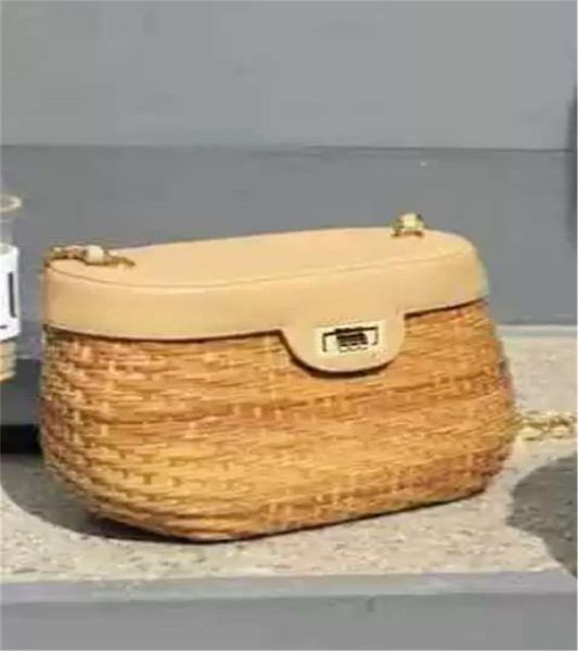 style small fragrance leather bamboo basket woven rattan bag chain, Black;red