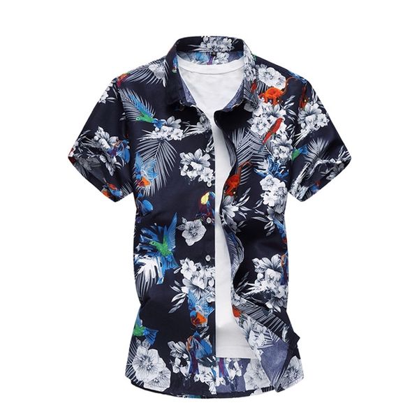 styles summer shirt men casual short sleeve men's floral shirts hawaii male flower print beach holiday 6xl 7xl 210626, White;black