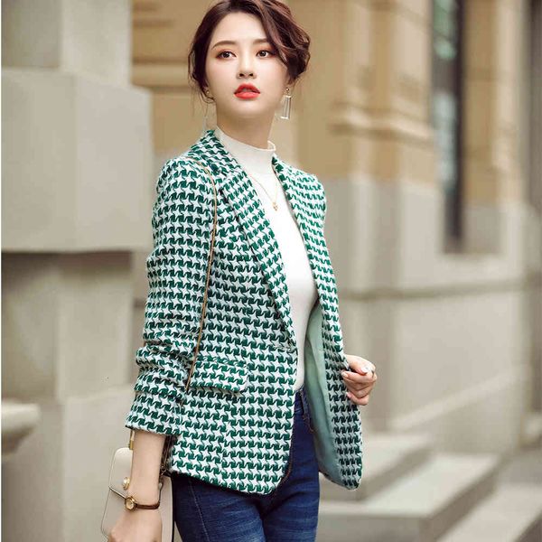 suit suit mode 2021 thin blazer of black women plaid feminine jacket casual autumn girl wear size s-4xl, White;black