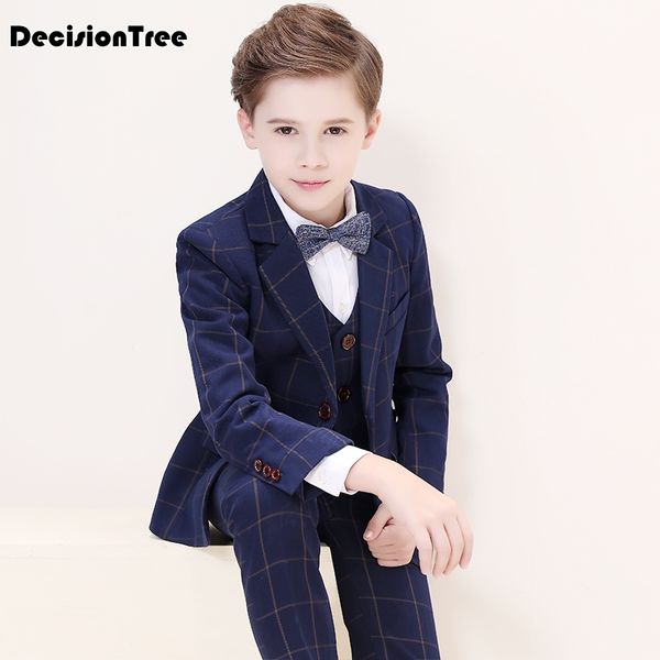 suits 2021 flower boys formal for weddings plaid blazer vest pants tuxedo kids gentleman party clothing sets, Black