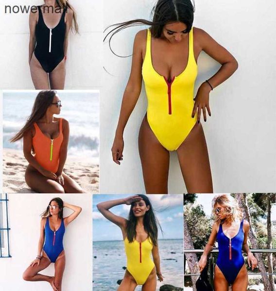 summer candy color one piece swimsuits women zipper design v-neck skinny bikini swimwear playsuits, White;black