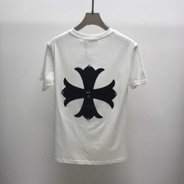 summer ch crowe short sleeve men's cross sanskrit pasted leather embroidered t-shirt pure cotton tide brand men's and women's, White;black