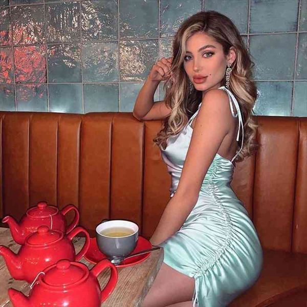 summer dresses light green pink purple satin ruched bandage bodycon backless mini dress casual clubwear womens clothing, Black;gray